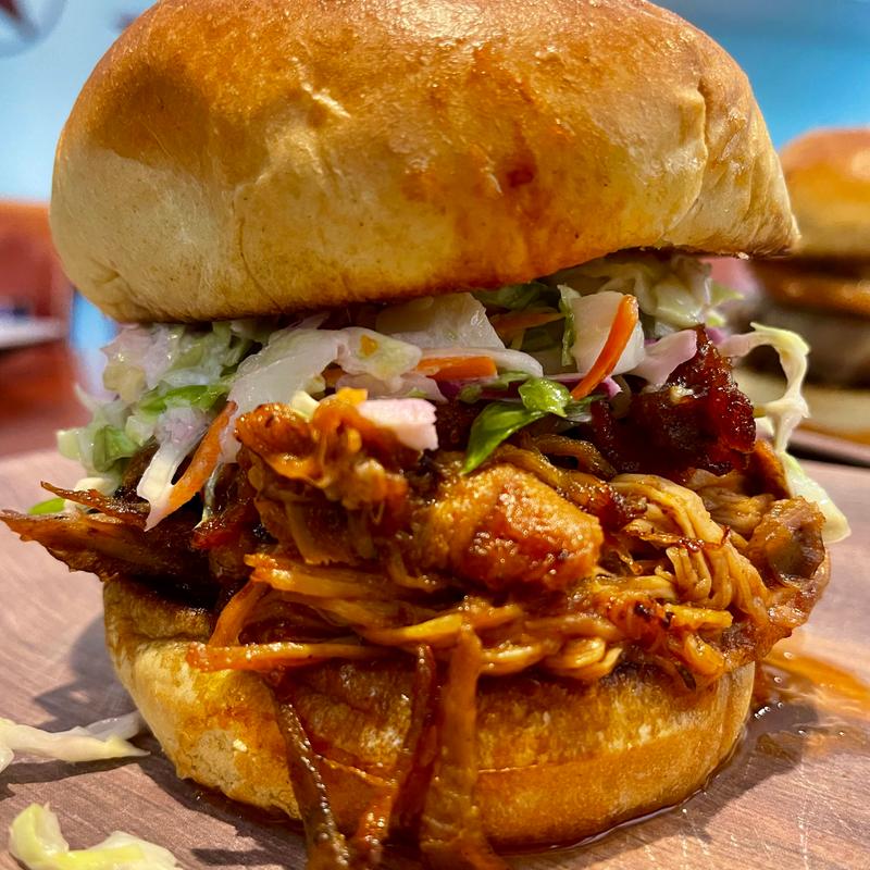 Our slow-smoked pulled pork, BBQ sauce, creamy coleslaw on brioche bun.
