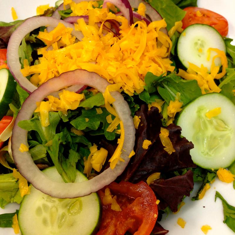 Mixed greens, shredded cheddar, tomatoes, cucumbers, red onions, house croutons. Add: Grilled Chicken (+4) | Grilled Shrimp (+4.50)
