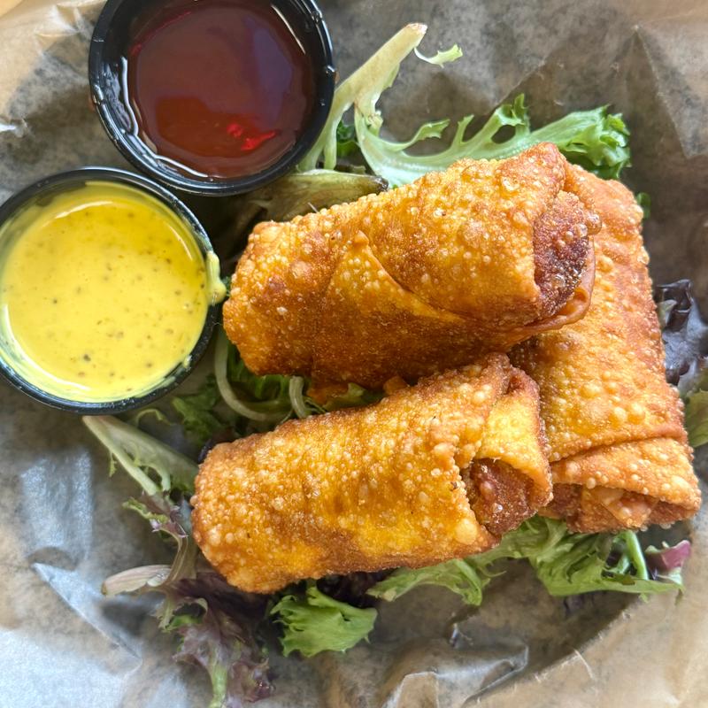 Crispy fried egg rolls filled with slow-smoked pulled pork, coleslaw, regular side.